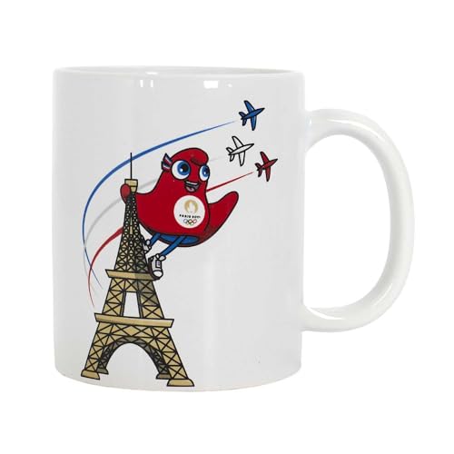 PARIS 2024, CJO40032, keramisk mugg Eiffeltornet maskot vit 30 cl, officiell licensierad produkt, mugg med stengods handtag, perfekt tillbehör för att njuta av dina favoritdrycker