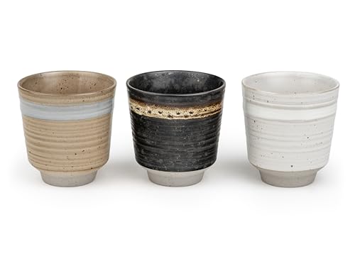 Bredemeijer keramik temugg set 3 delar – modern randig stengods mugg med 200 ml kapacitet vardera