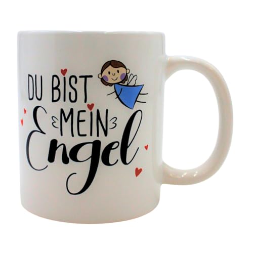 Kaffemugg – mugg av stengods, motiv: Du är min ängel. Storlek H/Ø: 9 x 8 cm, kapacitet 300 ml, i presentask