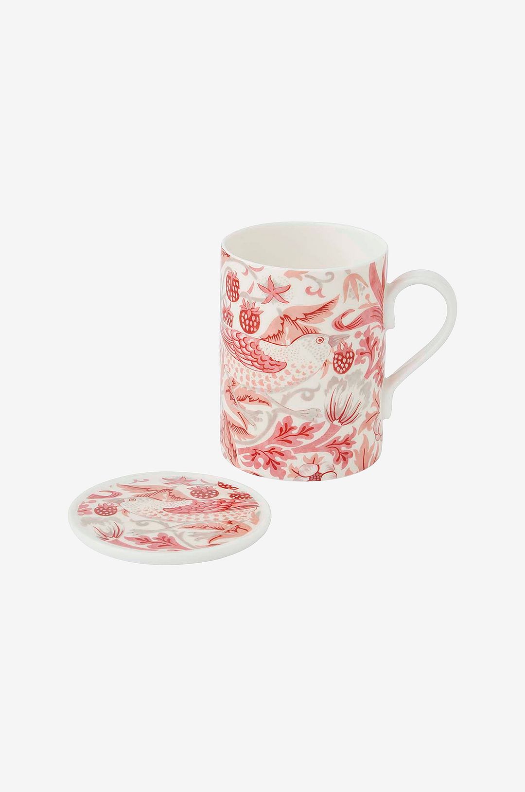 Spode - Mugg- och underläggsset Morris & Co Strawberry Thief Madder - Röd - Koppar & muggar - Från Homeroom