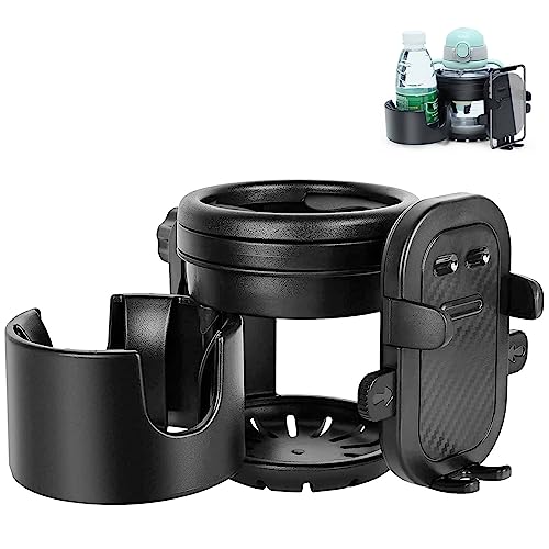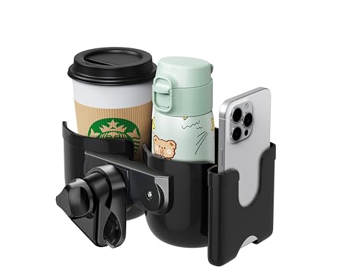 KDD Mugghållare för barnvagn med telefonhållare, 3-i-1 avtagbar flaskhållare, 360 graders roterande dryckeshållare för rullstol barnvagn cykel rullator skoter cykel Uppababy Nuna Bugaboo Doona