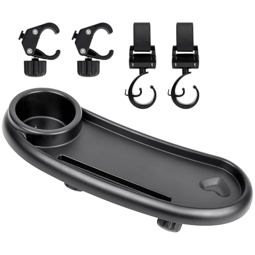 OSDUE Barnvagn mellanmålsbricka, 3-i-1 barnvagn mugghållare matbricka barnvagn avtagbar återanvändbar förvaringshållare hyllkonsol med justerbara spännkrokar