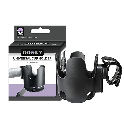 Dooky – mugghållare för barnvagnar och buggy – universell mugghållare barnvagn flaskhållare kaffehållare – kardborreband, halkskyddslager, 360° flexibilitet, BPA-fri – svart