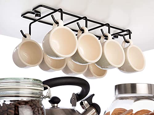 Vardesign Vardesing Mugghängare 8 Krokar Låg Hållare Möbelställ och Köksskåp Organisatör Skruvfäste Lackerad Svart