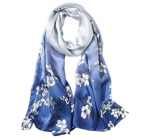 ANDANTINO 100% Mulberry Silk Long Scarf for Women Large Shawls for Headscarf and Neck- Oblong Hair Wraps with Gift Packed (Blue&White Plum Flowers)