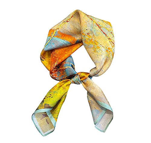 ANDANTINO 100% Pure Mulberry Silk Small Square Scarves -21'' x 21''- Digital Printed Neckerchief –Women Men Lightweight Scarf (Earthy Yellow)