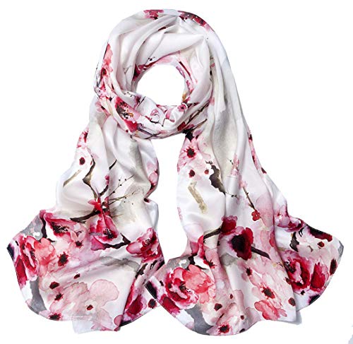 ANDANTINO 100% Mulberry Silk Long Scarf for Women Large Shawls for Headscarf and Neck- Oblong Hair Wraps with Gift Packed(wintersweet Flower)