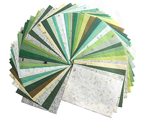 WADSUWAN SHOP 50 ark storlek A4 naturliga fiber mullbär träd mullbär pappersark design hantverk handgjord konst origami papper washi papper Unryu leverantörer skrivmålning (blandad grön)