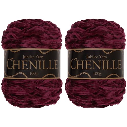 JubileeYarn Chenille Yarn – kamgarn, vikt – 100g/nystan – Scarlet – mörk mullbär lila sammet – virkning och stickgarn – 2 nystan