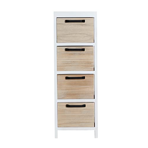 Lastdeco - SOURE Multibox | Vitt sängbord - Multibyrå i Paulownia trä - 4 lådor - 25 x 74 x 25 cm