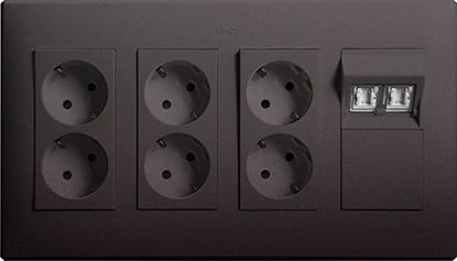 Kontakt Simon 6-vägsuttag+2xCat6 med multidosa Antracit