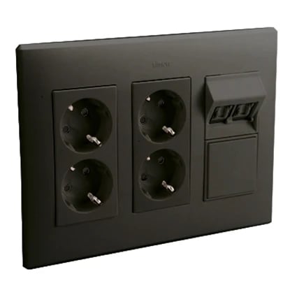 Kontakt Simon 4-vägsuttag+2xCat6 med multidosa Antracit