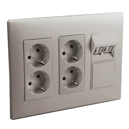 Kontakt Simon 4-vägsuttag+2xCat6 med multidosa Aluminium