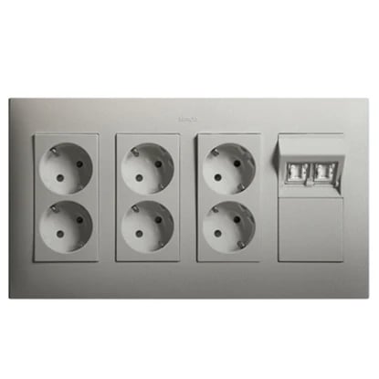 Kontakt Simon 6-vägsuttag+2xCat6 med multidosa Aluminium
