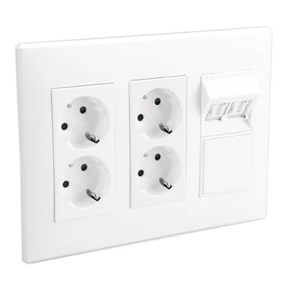 Kontakt Simon 4-vägsuttag+2xCat6 med multidosa Vit