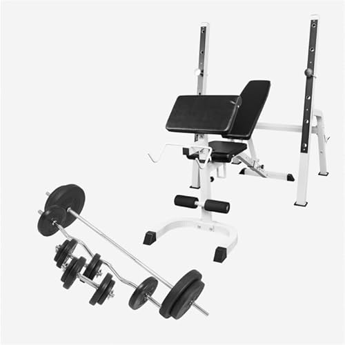 GORILLA SPORTS® viktbänk - inklusive skivstångsset 100 kg, hylla och curlbord, multifunktionell, justerbar, svart/vit - lutningsbänk, bänkpress, träningsbänk med vikter, fitness, multigym