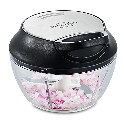 SILBERTHAL lökskärare för grönsaker, örter, nötter, grädde – 500 ml – multihackare med kabeldragning – lökskärare manuell med 3 blad av japanskt stål