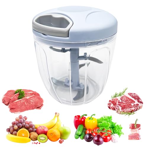 Fousenuk Grönsaksskärare, 900 ml lökskivare manuell, lökdokumentförstörare manuell med kabeldragning, multihackare med 5 blad av rostfritt stål, grönsakskrossare kök, vitlök lökskärning