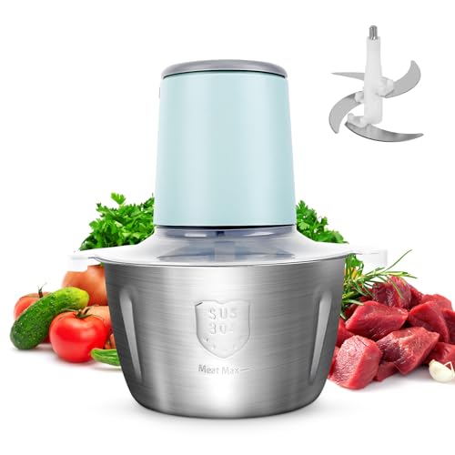 Krossare kök elektrisk stor kapacitet, 2 hastighetsinställningar, 148 W multihackare med 2 l behållare i rostfritt stål och 4 knivar i rostfritt stål, matprocessor för kött, lökar, frukt, grönsaker
