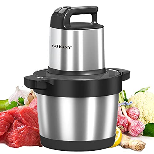 SOKANY Elektrisk hackare för köket, 1 500 W, med skål på 6,5 liter av rostfritt stål, multihackare med 3 hastighetsinställningar, köttkvarn med 4 blad för kött, lök, frukt och grönsaker