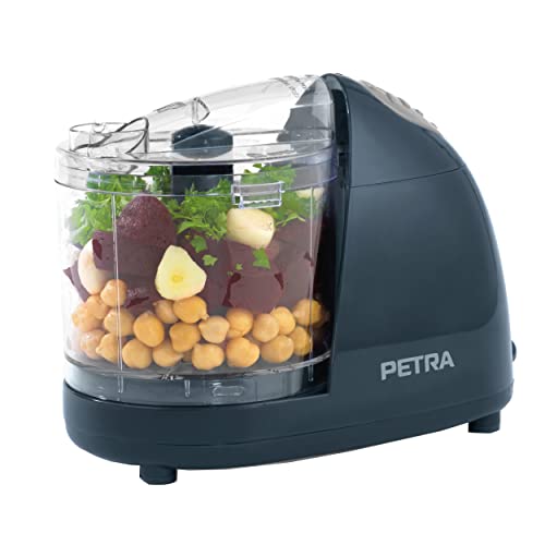Petra PT2182HEVDEEU10 Elektrisk multihackare – minimatberedare, 2 blad i rostfritt stål, 1 500 varv/min, BPA-fri transparent skål, universell 350 ml hackare för nötter, frukt, grönsaker, 150 W