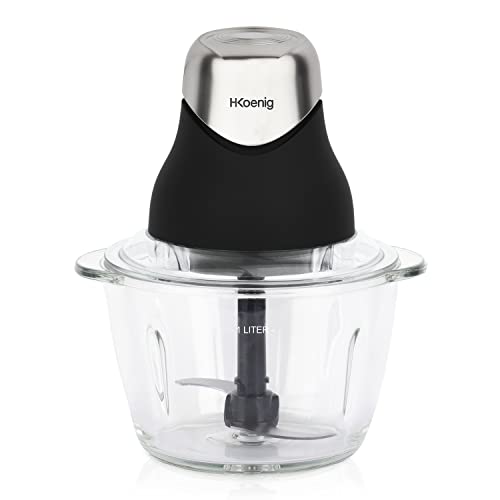 H.Koenig LEO8 multihackare för grönsaker, lökar och nötter, elektrisk, blad av rostfritt stål, 1 x glasskål, enkel hantering, lock för färskhållning, svart