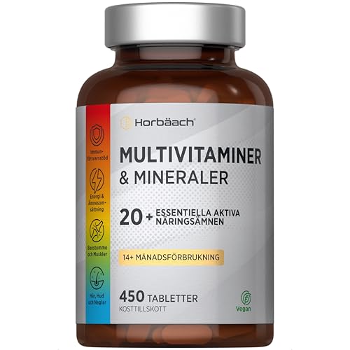 Multivitaminer & Mineraler Tabletter | 450 Veganska Tabletter | för Man och Kvinna | 20+ Essentiella Aktiva Näringsämnen | Multivitamin & Mineral Tablets | von Horbaach