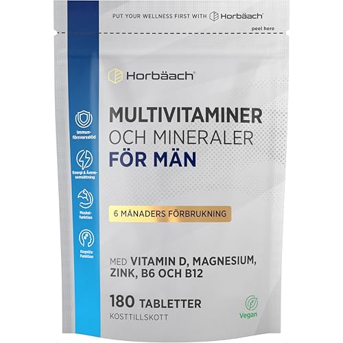 Multivitamin Man | 28 Essentiële A-Z Vitaminen & Mineralen | Multivitaminer och Mineraler för Män | 180 Veganska Tabletter | med Calcium, Vitamin A, B Komplex & mer | Horbaach