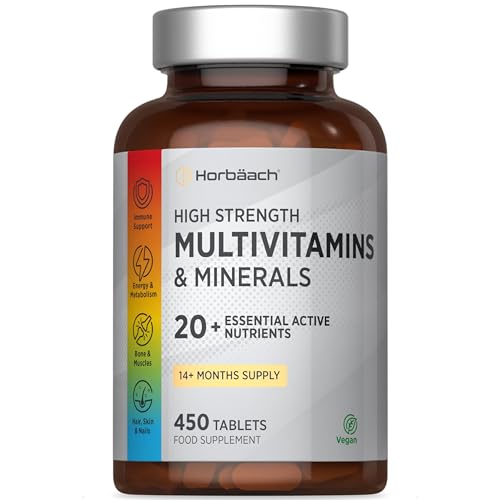 Multivitaminer & Mineraler Tabletter | 450 Veganska Tabletter | för Man och Kvinna | 20+ Essentiella Aktiva Näringsämnen | Multivitamin & Mineral Tablets | von Horbaach