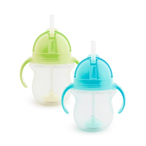 Munchkin Click Lock Tip & Sip Straw Cup Set | Baby & Toddler Sippy Cups with Straw| BPA Free Non Spill Cup| Dishwasher Safe Baby Straw Cup| Weighted Straw Childrens Cups| 7oz/207ml| 2 Pack| Green/Blue
