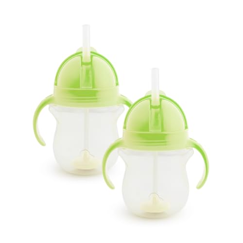 Munchkin Click Lock Tip & Sip Straw Cup Set | Baby Toddler Sippy Cups with Straw | BPA Free | Leakproof Cup | Dishwasher Safe | Baby Cup Weighted Straw | Baby Bottles -7oz/207ml | 2 Pack | Green