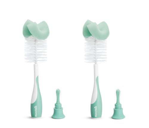 Munchkin 2-i-1 svamp- och babyflaskborstar för rengöring | Flaskrengöringsborste & vattenflaska borstset | mjuk och återanvändbar med inbyggd nappborste | diskmaskinssäker | 2-pack | salvia