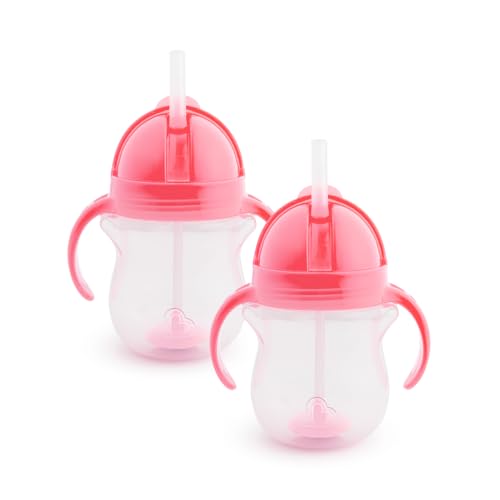 Munchkin Click Lock Tip & Sip Straw Cup Set | Baby Toddler Sippy Cups with Straw | BPA Free | Leakproof Cup | Dishwasher Safe | Baby Cup Weighted Straw | Baby Bottles -7oz/207ml | 2 Pack | Pink