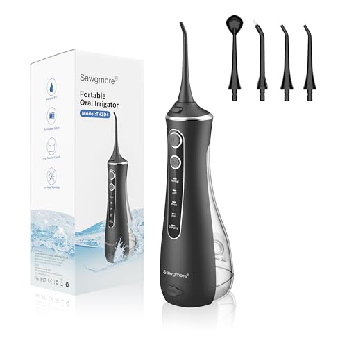 Sawgmore Mundusch, elektrisk tandrengöring med 5 multifunktionella munstycken, 10 vattentrycksinställningar, 600ML kapacitet Family Care Dental Irrigator (svart)