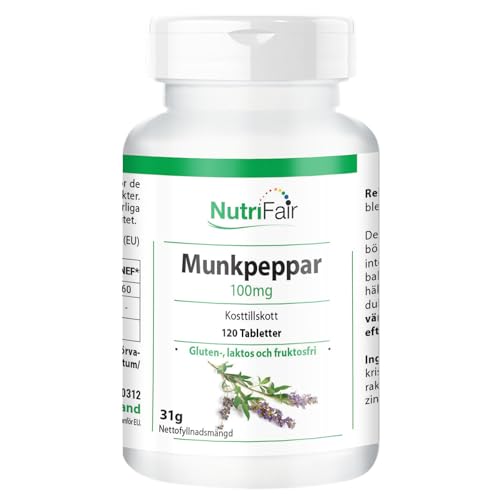 Munkpeppar 100 mg - Vitex agnus Castus - med 6 mg zink per daglig dos - 120 tabletter - högdos - 100% vegan - tysk produktion och laboratorietestning - NutriFair | Premium & Fair