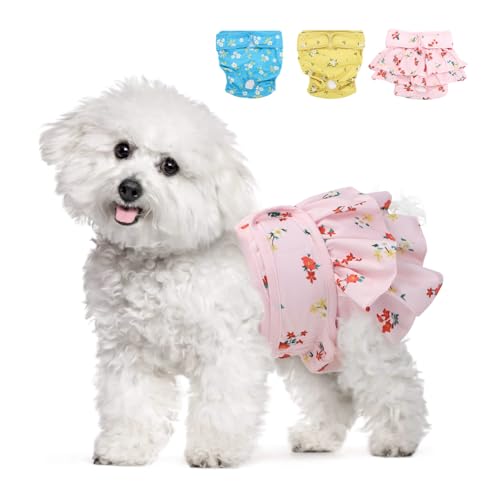 Avont Hundblöjor, 3-pack tvättbara hundblöjor för tik, återanvändbara, för löpande tikar, vid inkontinens, i kjoldesign, storlek XS, rosa/blå/orange frukt