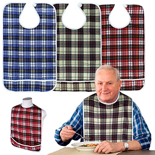 Vegena 3-pack Haklappar för Vuxna, Vattentäta Haklappar för Seniorer, Tvättbara Haklappar med Tryckknappar, Klädskyddande Haklapp för Män Kvinnor Äldre Personer med Funktionsnedsättning