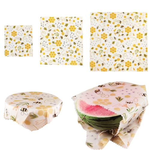 3 Pack Återanvändbara bivax Mat Wraps Ekologisk bivax Wraps Miljövänlig vax Wrap Sandwich Mat Förvaringslock Tvättbara vax Wraps Hållbar biologiskt nedbrytbar nollavfall Plastfri livsmedelslagring