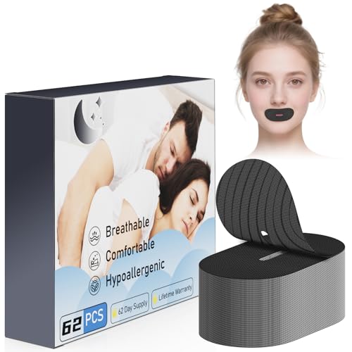 EVUMO Snarkplåster, 62 st. munplåster för bättre sömn, mot snarkning, högkvalitativ muntejp för sömn, för män och kvinnor, svarta