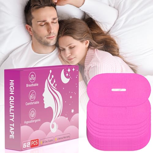 EVUMO Snarkplåster, 62 st. snarkstoppare, munplåster för bättre sömn, mot snarkning, högkvalitativ muntejp för sömn, för män och kvinnor, rosa