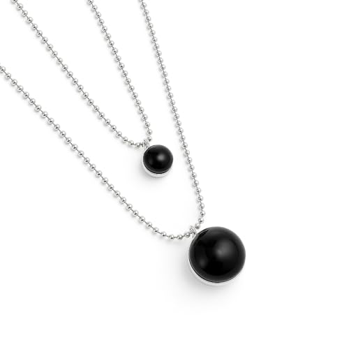 UNOde50 Örhängen med två bollar, en boll med svart murano-glas, sterlingsilverpläterade, handgjorda smycken | Tillverkad i Italien, en storlek, legering, inga ädelstenar, storlek unisex, metall, har
