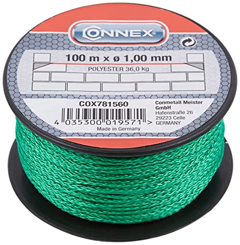 Connex murarsnöre grön – 100 m längd – Ø 1,0 mm – polyester flätad – knut fast – slitstark och hållbar – på spole, riktsnöre, byggsnöre, lotsnöre, gatsnöre, COX781560