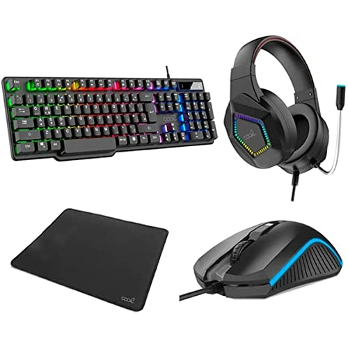 Combo Gaming RGB-bakgrundsbelyst tangentbord och mus, inklusive matta och stativ, perfekt för spelare för ergonomi och design.