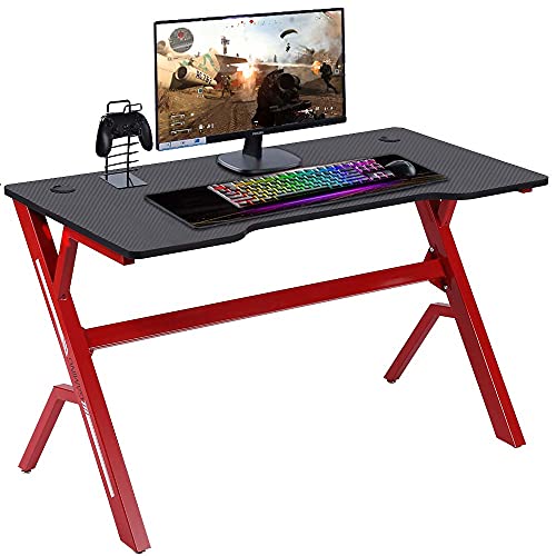 BAKAJI Skrivbord Gaming Datordörr Pc Datorstruktur Metall Golv Trä MDF Texture Kolfiber med Matta Mus MousePad ingår Storlek 120 x 60 x 73 cm Online Spel