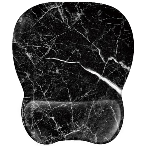 EooCoo Mus Matta med Handledsstöd, Ergonomiskt Tryckt Musmatta med Viscoelastiskt Skum Handstöd, Halksäkert Gummibas, Svart Marmor Mönster