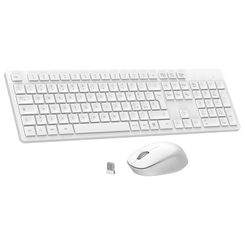 LeadsaiL Trådlöst tangentbord och mus, trådlöst tangentbord och mus-kit för 2,4 GHz, full storlek, tyst, ergonomiskt, numeriskt tangentbord, italiensk QWERTY layout för HP/Lenovo/Mac-vit