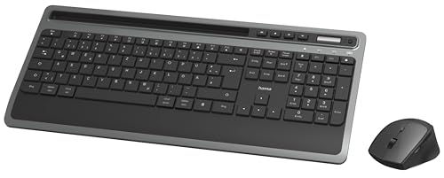 Hama tangentbord mus set trådlöst (trådlöst tangentbord med mus, med batteri, ergonomisk skrivkänsla, tysta tangenter, USB-mottagare, mus med dpi brytare, multimediaknappar, tysk QWERTZ-layout) svart