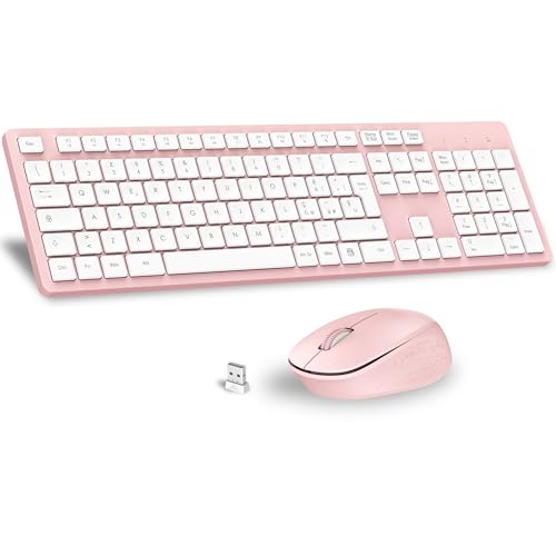 LeadsaiL Trådlöst tangentbord och mus, trådlöst tangentbord och mus-kit för 2,4 GHz, full storlek, tyst, ergonomiskt, numeriskt tangentbord, italiensk QWERTY layout för HP/Lenovo/Mac-rosa