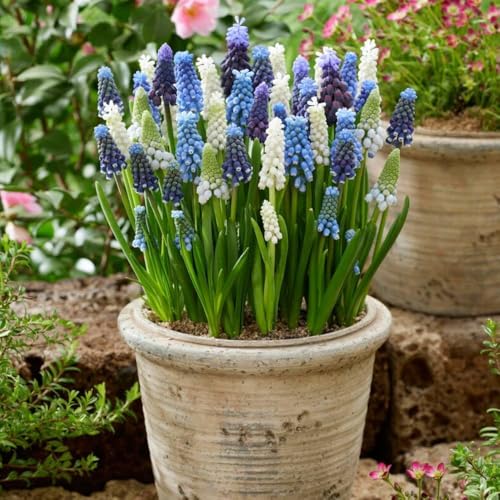 Muscari Budget Mix (100 lökar), mix av 5 sorter och färger från Holland, verkligt vinterhärdiga och mångåriga druvhyacintlökar/blommor/lökar (inget frö) för trädgårdar och krukor.