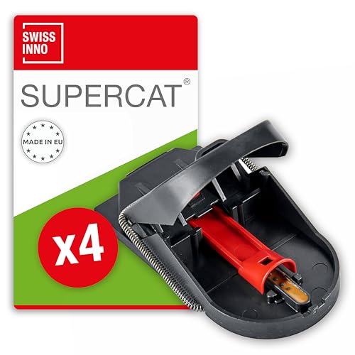 SWISSINNO musfälla SuperCat: Effektiv + återanvändbar med giftfritt matbete. Fällor och dödar direkt. Inomhus- och utomhusbruk. Säker för barn och husdjur. Tillverkad i Europa: 4 x fällor + 2 x